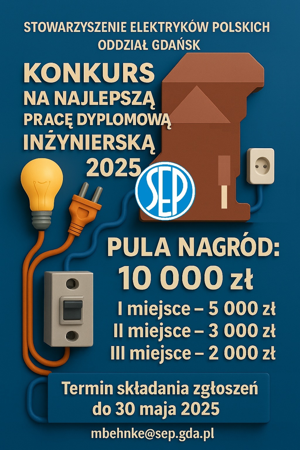 Stowarzyszenie Elektryków Polskich Oddział Gdańsk zaprasza do wzięcia udziału w konkursach organizowanych lub wspieranych przez Oddział.