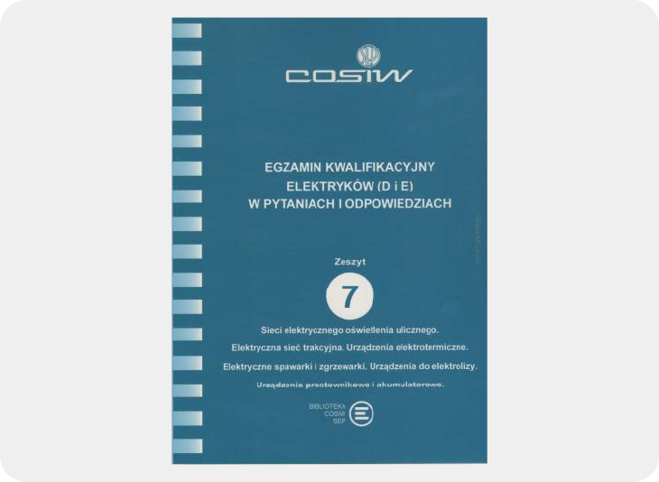 Opracowanie obejmuje zakres znajomości przepisów, zasad budowy, eksploatacji, bezpieczeństwa pracy oraz postępowania w razie wystąpienia zagrożenia, np. pożaru, porażenia prądem, a także umiejętności udzielania pierwszej pomocy.